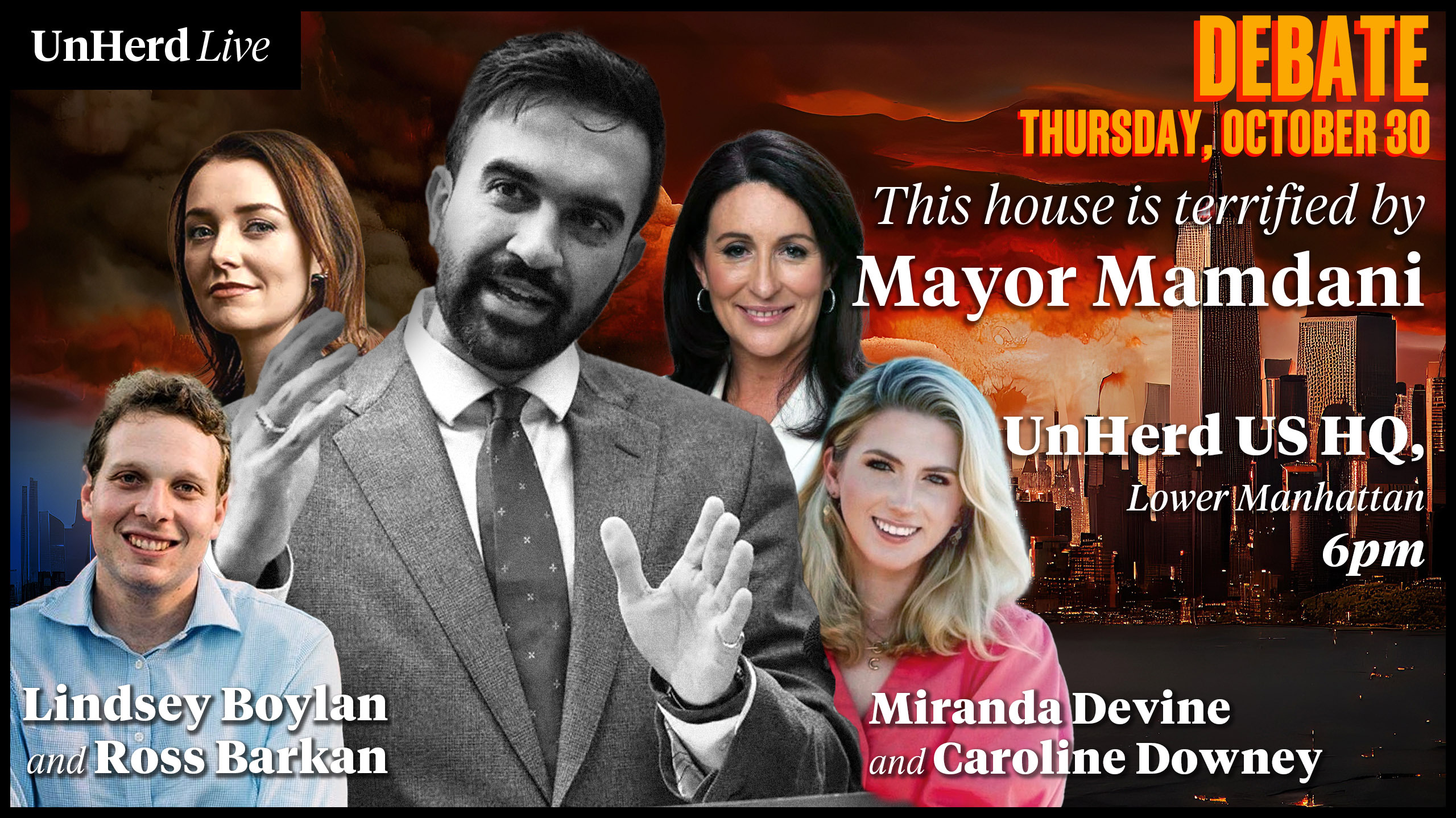 Join UnHerd for an exclusive in-person debate at our Manhattan headquarters, featuring our columnist Ross Barkan and progressive activist and whistleblower Lindsey Boylan (in support of Mamdani) versus the New York Post’s Miranda Devine and National Review’s Caroline Downey (in opposition).