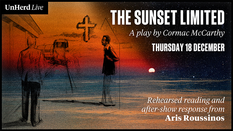 The Sunset Limited, a rare play by writer Cormac McCarthy, tells the story of two men in crisis whose lives collide at a New York train station. A clash of cultures, race and religion ensues, unfurling in a dialogue of such philosophical intensity that McCathy referred to it as a ‘novel in dramatic form’. Join UnHerd for a live rehearsed reading of this vital play and an open discussion of its themes, led by columnist Aris Roussinos.